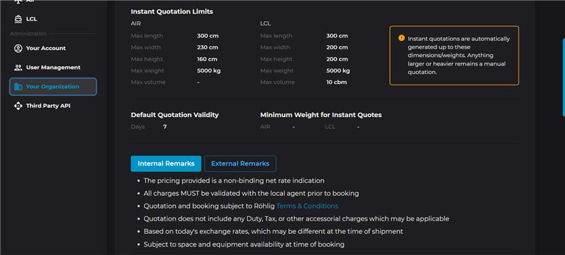 Instant Quotation Limits